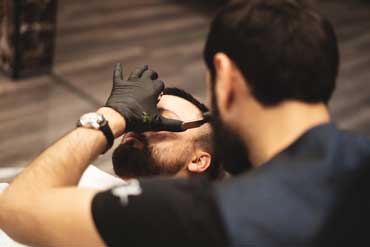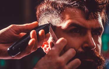 Afeitado al ras utilizando una navaja de barbero, con toallas calientes y productos de alta calidad